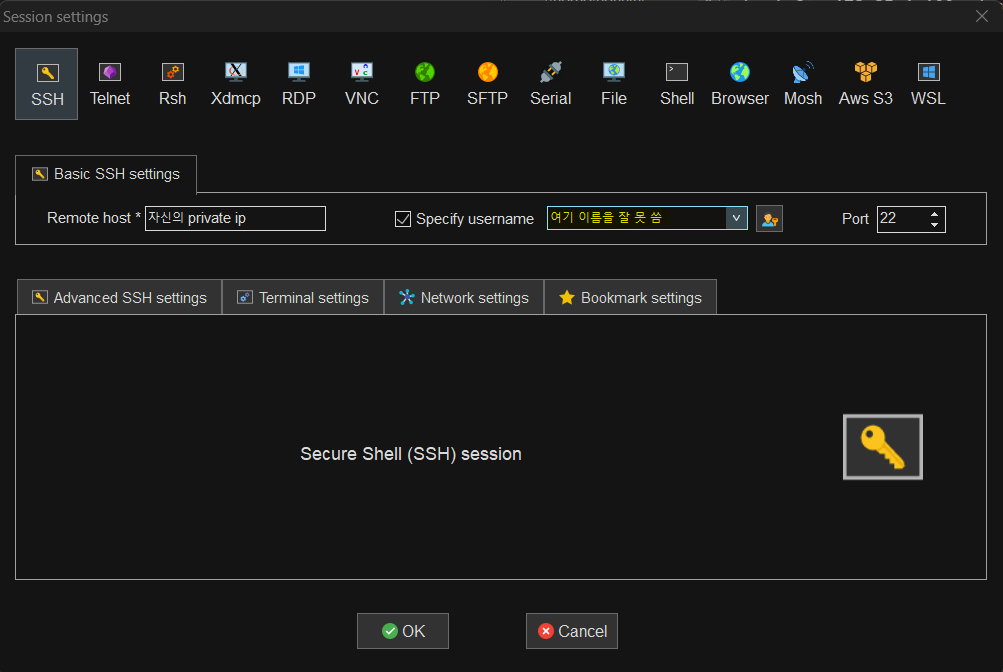 아래 처럼 os설정을 aws로 설정했을 경우 ec2-user로 작성해줘야함